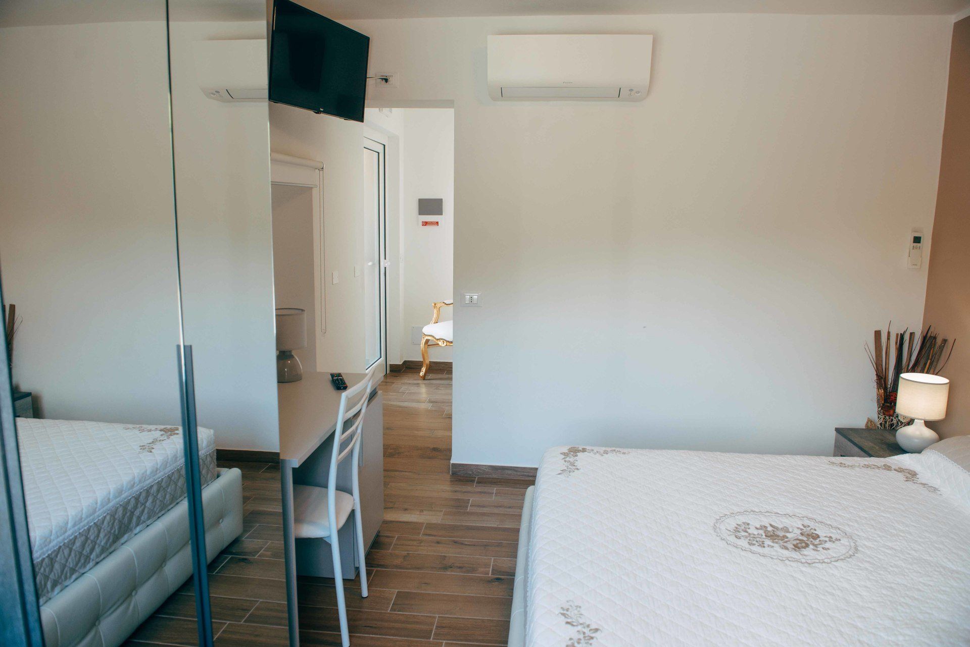 - Due camere, una con letto matrimoniale e una con due letti singoli entrambe con televisore.